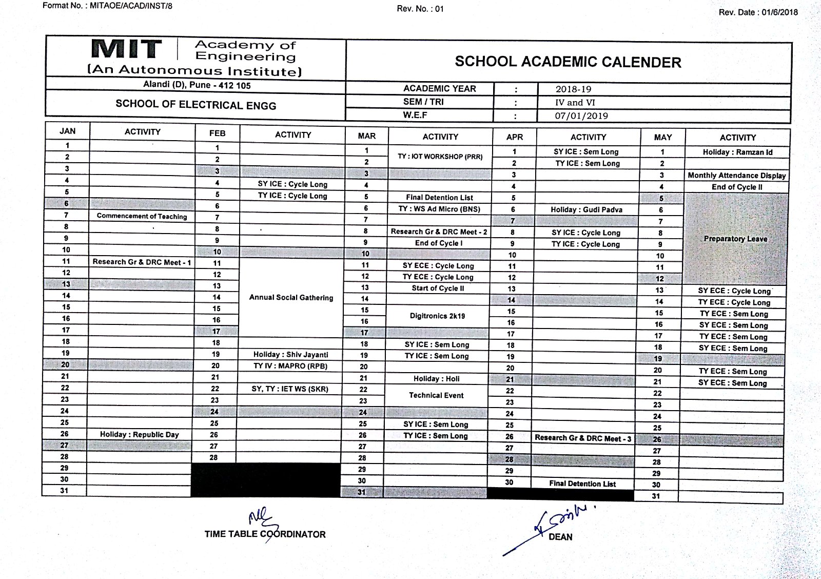 Academic Calender